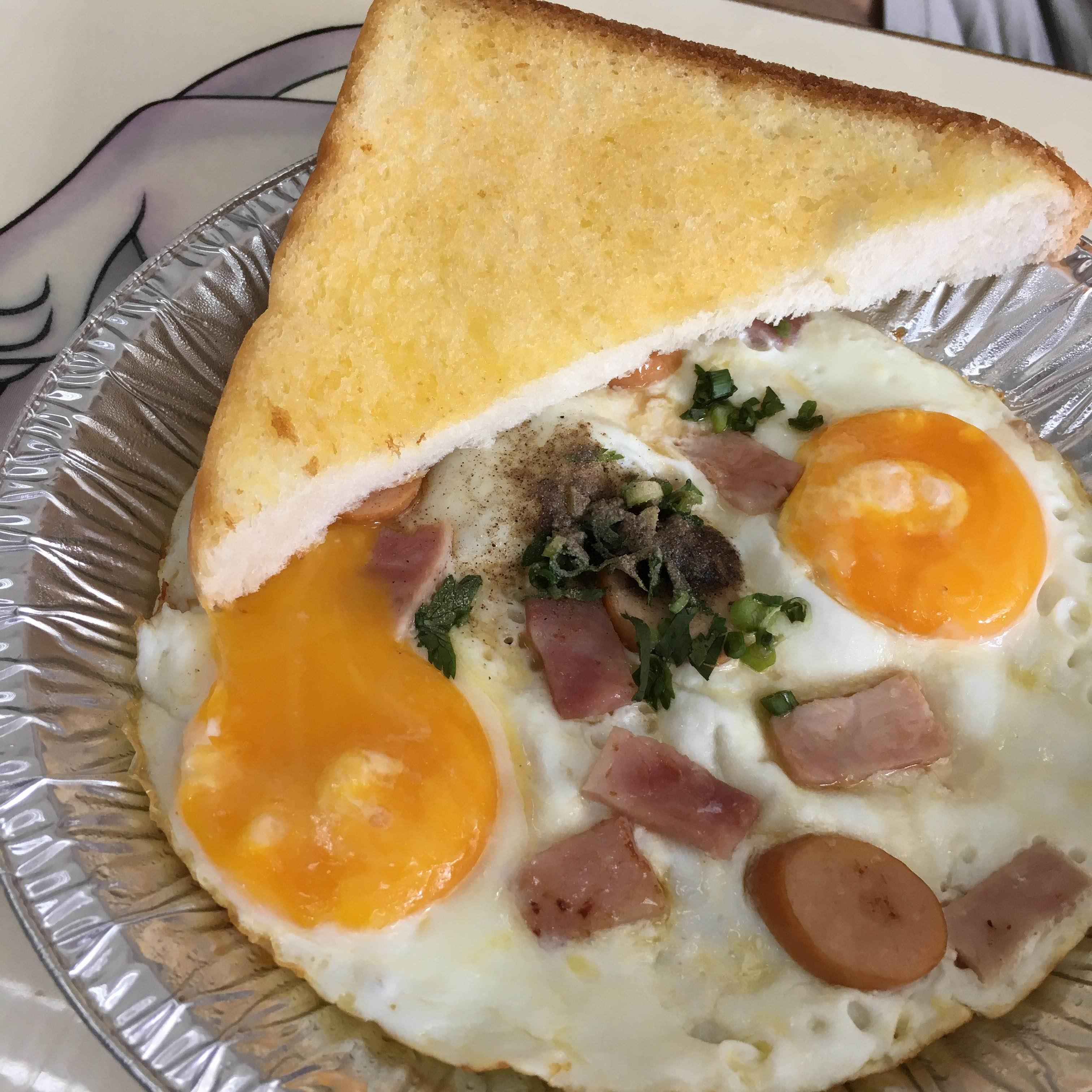 มาแล้วจ้า ไข่ 2 ฟอง แฮม ไส้กรอก มีเครื่องปรุงรสให้ปรุงหน้างานกันเลย 2 อย่าง แม็กกี้ และพริกไทย สำหรับค่าเสียหาย 42 บาท