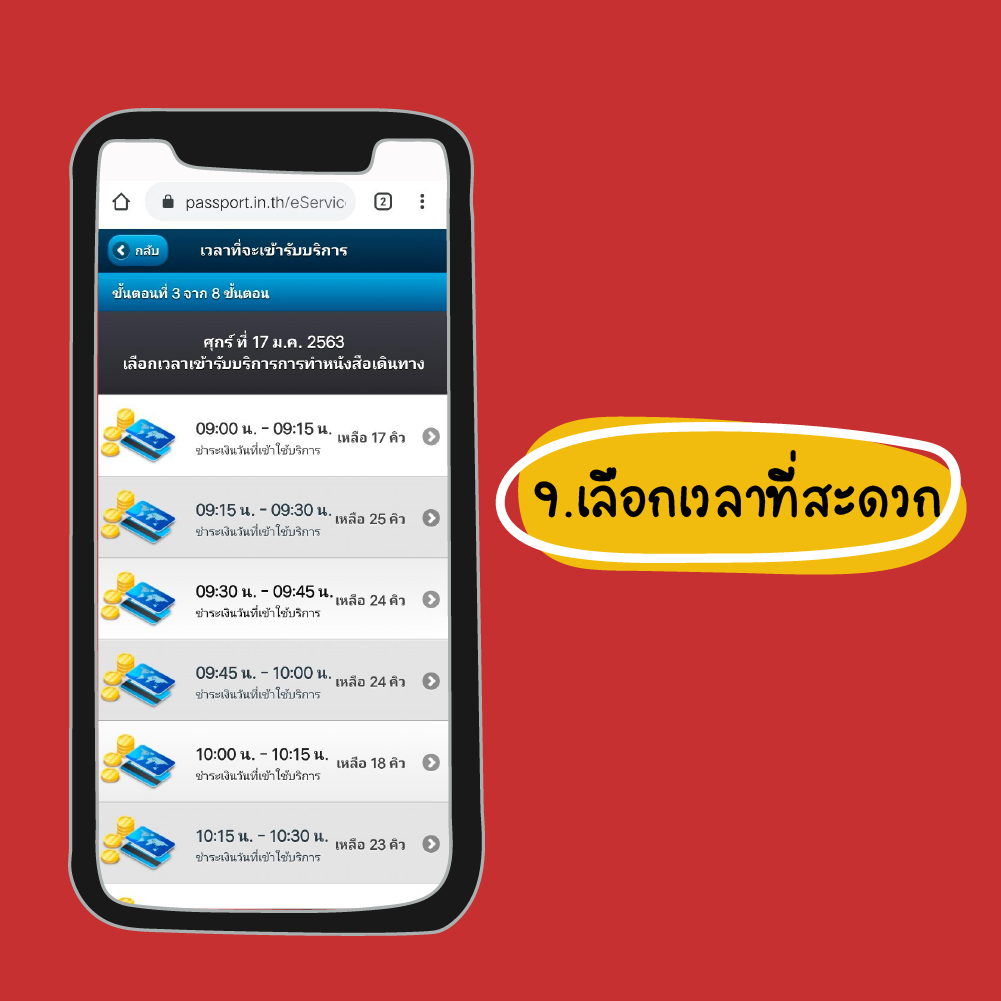 นอกจากจะเลือกวันได้แล้ว ยังสามารถเลือกเวลาทำพาสปอร์ตได้อีกด้วยนะ