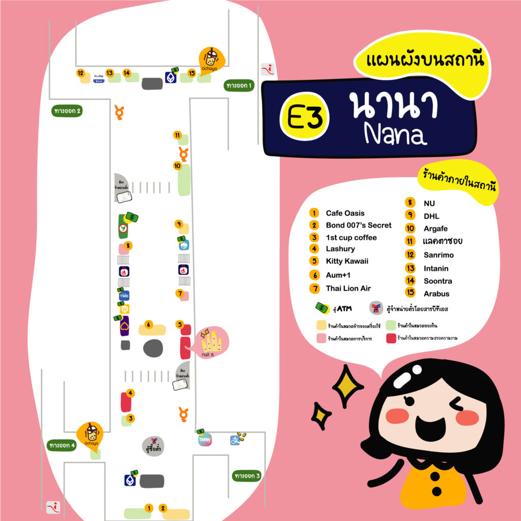 สถานีในโซนสุขุมวิทซอยต้น ๆ เป็นแหล่งรวมบาร์นั่งในยามค่ำคืน และยังมีร้านอาหารน่าสนใจอีกมากมาย