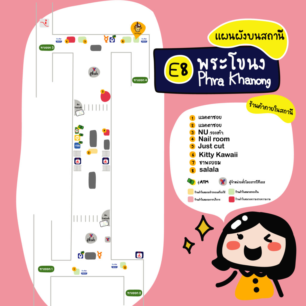 ทางออกที่ 3 ซอยสุขุมวิท 69, ที่ทำการไปรษณีย์พระโขนง, เวลท์ส เรสซิเดนซ์, ป้ายรถประจำทางไปอ่อนนุช (บันไดเลื่อน)