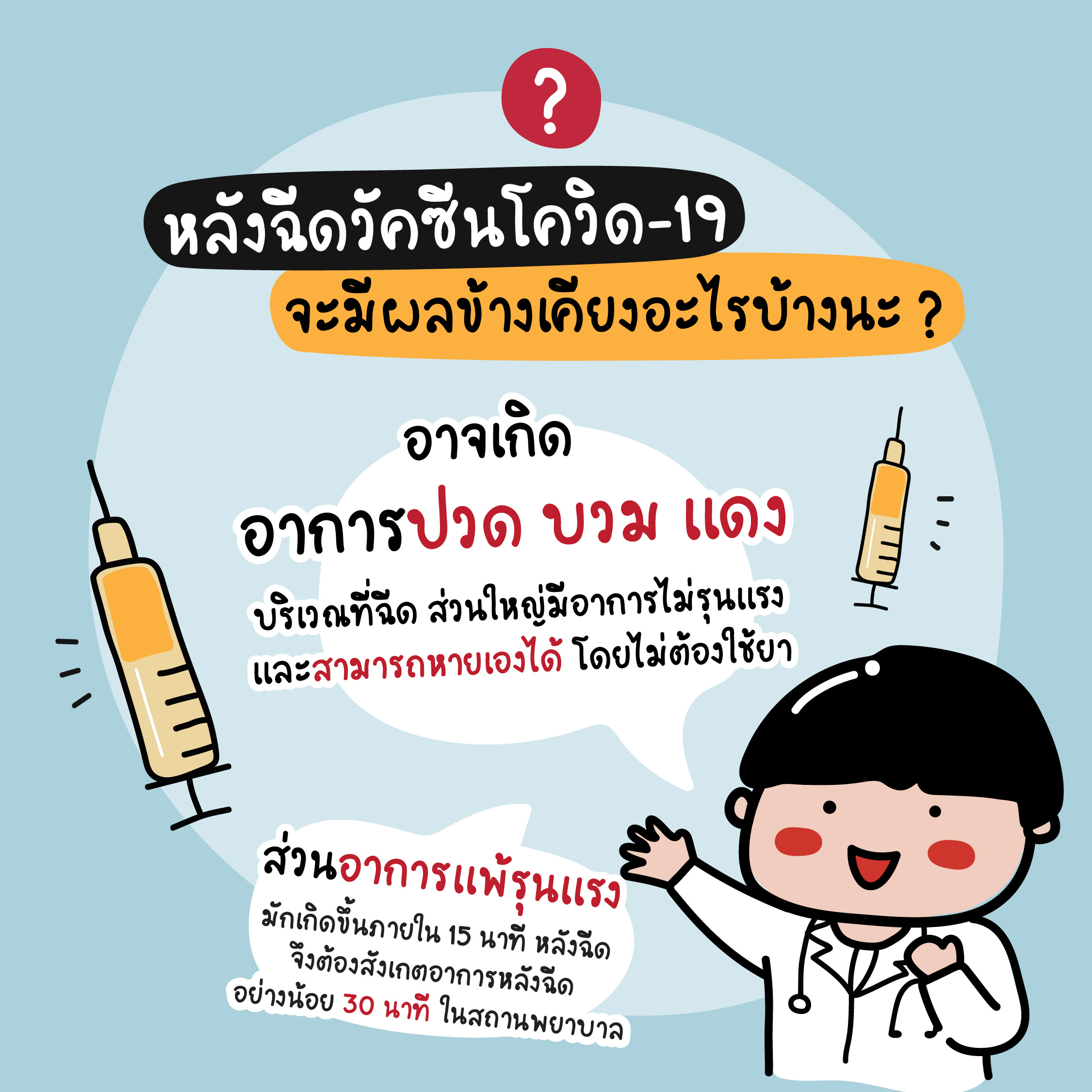 🩺Q: หลังฉีดวัคซีนโควิด-19 จะมีผลข้างเคียงอะไรบ้างน้า?