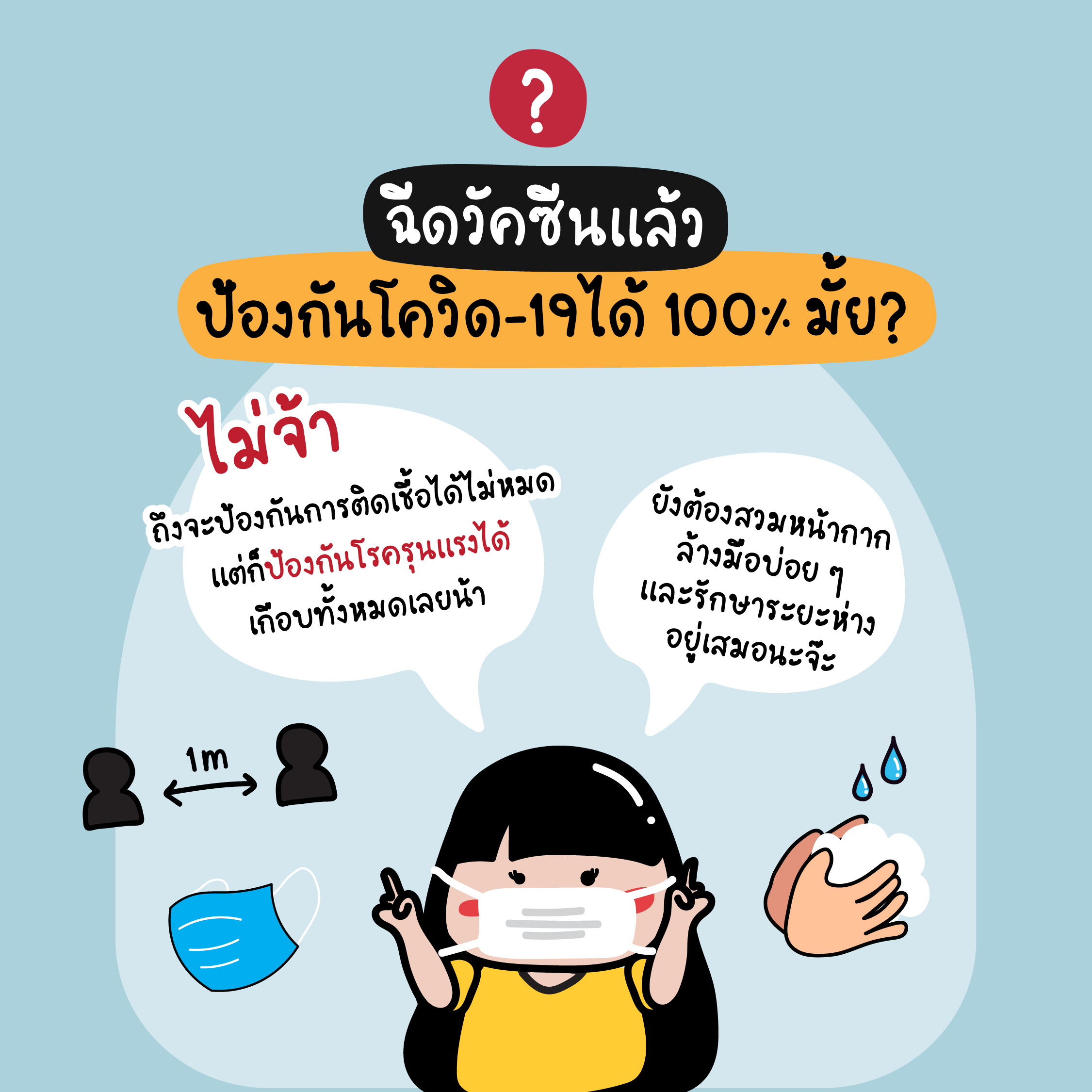 🩺Q: ฉีดวัคซีนแล้ว ป้องกันโควิด-19 ได้ 100% มั้ย?
