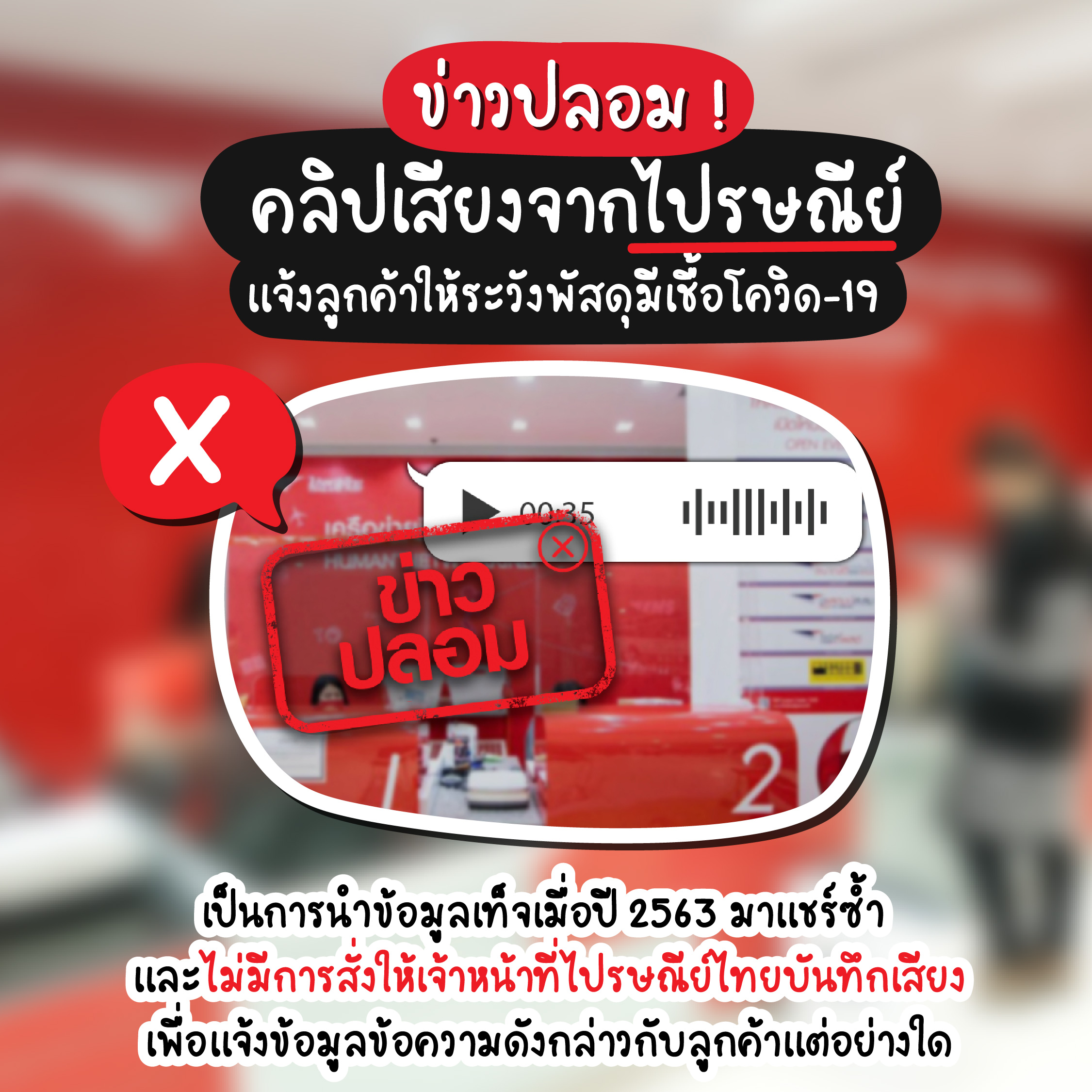 จากข่าวที่ว่ามีคนได้รับเชื้อโควิด-19 จากการรับพัสดุและจดหมาย ไปรษณีย์ไทยก็ได้มีการชี้แจงแล้วว่าไม่เป็นความจริงนะจ๊ะ เพราะไม่มีการสั่งให้เจ้าหน้าที่บันทึกเสียงเพื่อแชร์ข้อมูลแต่อย่างใดจ้าา