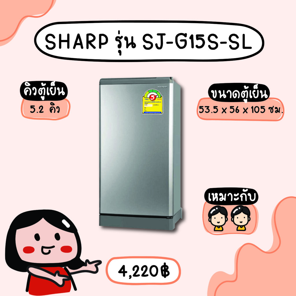 ตู้เย็น 1 ประตูจาก Sharp สีเงินเรียบหรูดูแพง ไซส์กำลังดี ชั้นวางของจัดสรรได้เอง ปรับเป็นครึ่งชั้น หรือพับเก็บได้ถ้าอยากแช่ของขนาดใหญ่ ขาตั้งติดมากับตู้เย็นเลยจ้า สะดวกในการเคลื่อนย้าย ไม่ต้องแยกส่วน