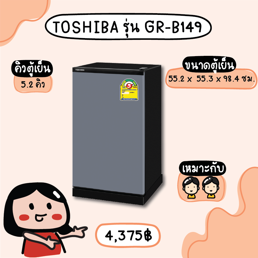 Toshiba รุ่นนี้ราคาแค่ 4 พันต้น ๆ แต่มีช่องแช่แข็งที่ปรับให้ใหญ่ขึ้น ใส่เนื้อสัตว์และเครื่องดื่มได้มากกว่า มีช่องใส่ไข่แบบ Built – in มาให้ ดีไซน์โมเดิร์น เรียบแต่โก้