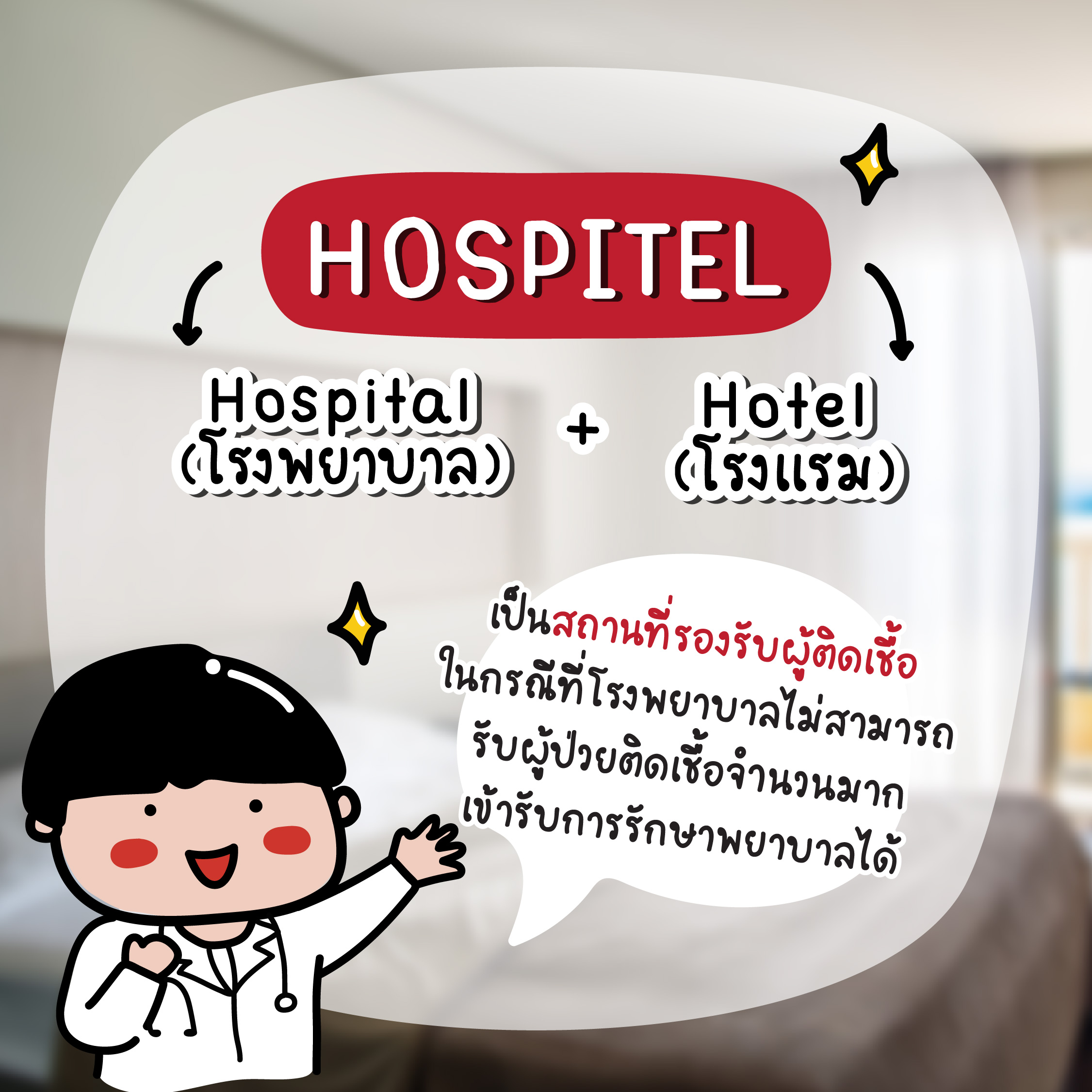 💡ว่าง่าย ๆ ก็คือ Hospitel มีไว้เพื่อช่วยลดความแออัดในโรงพยาบาลหลักนั่นเองจ้าา