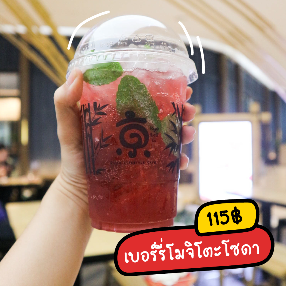 เมนู : สำหรับร้าน Kyo roll en นั้น อย่างที่เราบอกไปว่าจะมีเมนูวนเวียนตามเทศกาลอยู่เรื่อย ๆ ทำให้มีเมนูใหม่ ๆ มาให้เราได้ลองกันตลอดเวลา แต่เมนูประจำของที่นี่ก็ยังคงมีอยู่นะ เมนูเด็ดดวงที่ใครมาก็ต้องสั่งอย่างเมนูชาเขียว บทความนี้เราจะมาแนะนำเมนูประจำของที่นี่กันนะ! มาเริ่มกันด้วยเมนูน้ำ ๆ กันดีกว่า มีทั้งมัทฉะในรูปแบบต่าง ๆ ทั้งแบบชาเย็น มัทฉะลาเต้ และมัทฉะฟรอสท์ โปะซอฟต์เสิร์ฟอร่อย ๆ ในราคาตามนี้เลย เมนูโซดาสุดซ่า เปรี้ยวสะใจอย่าง Momo Tennensui หรือน้ำพีชญี่ปุ่น และ Kyoho Soda หรือเมนูน้ำเคียวโฮ ยูซุโซดา และ สตรอเบอร์รี่ไฮบิสคัสโซดา เปรี้ยวซ่าสุด ๆ ในราคาเริ่มต้น 109 บาท Roll Cake อร่อย ๆ สุดนุ่มนิ่มที่พลาดไม่ได้ เริ่มต้นที่ 459 บาท ทานได้ 2-3 คนเลยนะ หรือจะเป็น ชีสเค้กอร่อย ๆ ก็มีนะ ขนมอื่น ๆ ก็มีอย่าง ชีสทาร์ตไส้มัทฉะและชีสน่าอร่อยยย ~ ทานพร้อมกับกาแฟได้เลย หรือจะเป็นคัสตาร์ดพุดดิ้งก็มีนะ อย่างเจ้าซิกเนเจอร์คัสตาร์ดตัวนี้ มาในแก้วใสรูปไข่คิ้วท์ ๆ เริ่มต้นที่ 95 บาท พาร์เฟต์ก็มาาา หลากหลายรสชาติในราคาเริ่มต้น 165 บาท เมนูคากิโกริจิ๋ว ๆ ทานคนเดียวได้ มีหลายรสให้เลือกด้วย เริ่มต้น 155 บาท เมนูอันมิตซึสุดหลากหลายสำหรับใครที่ชอบผลไม้จะต้องกรี๊ด เพราะรวมมิตรทั้งผลไม้ ซอฟต์ครีม และโมจิครบ ๆ ในถ้วยเดียว โมนาโกะ หรือขนมปังแซนวิชไอศกรีมสุดดี เลือกได้ถึงสีรสชาติในราคา 115 บาท