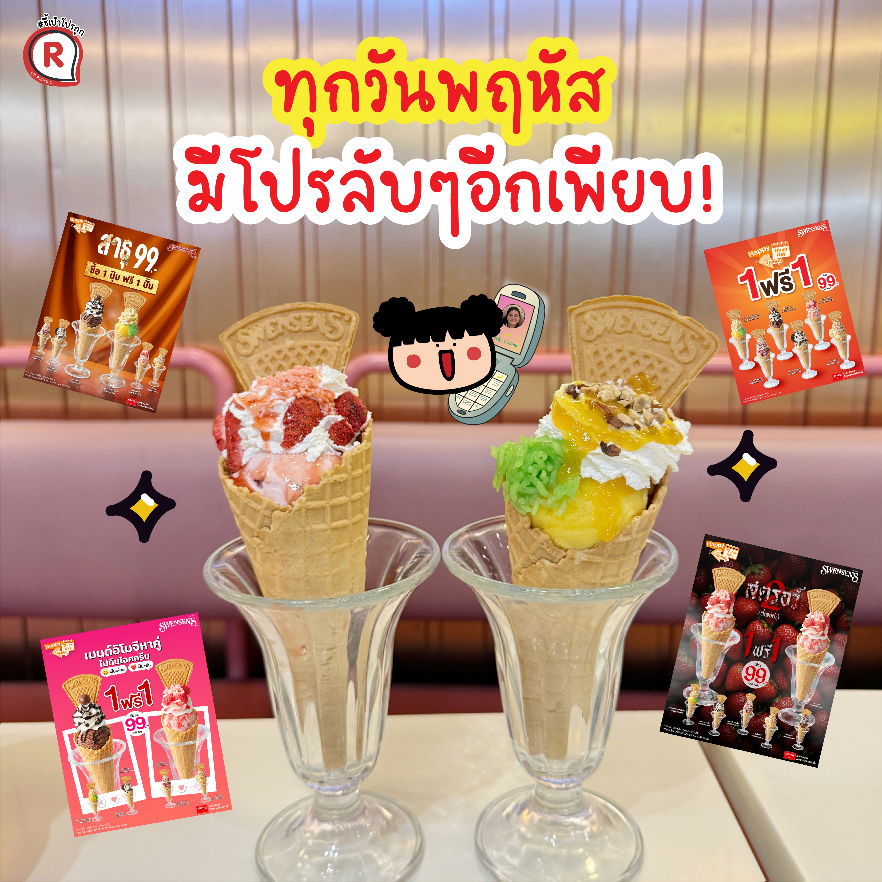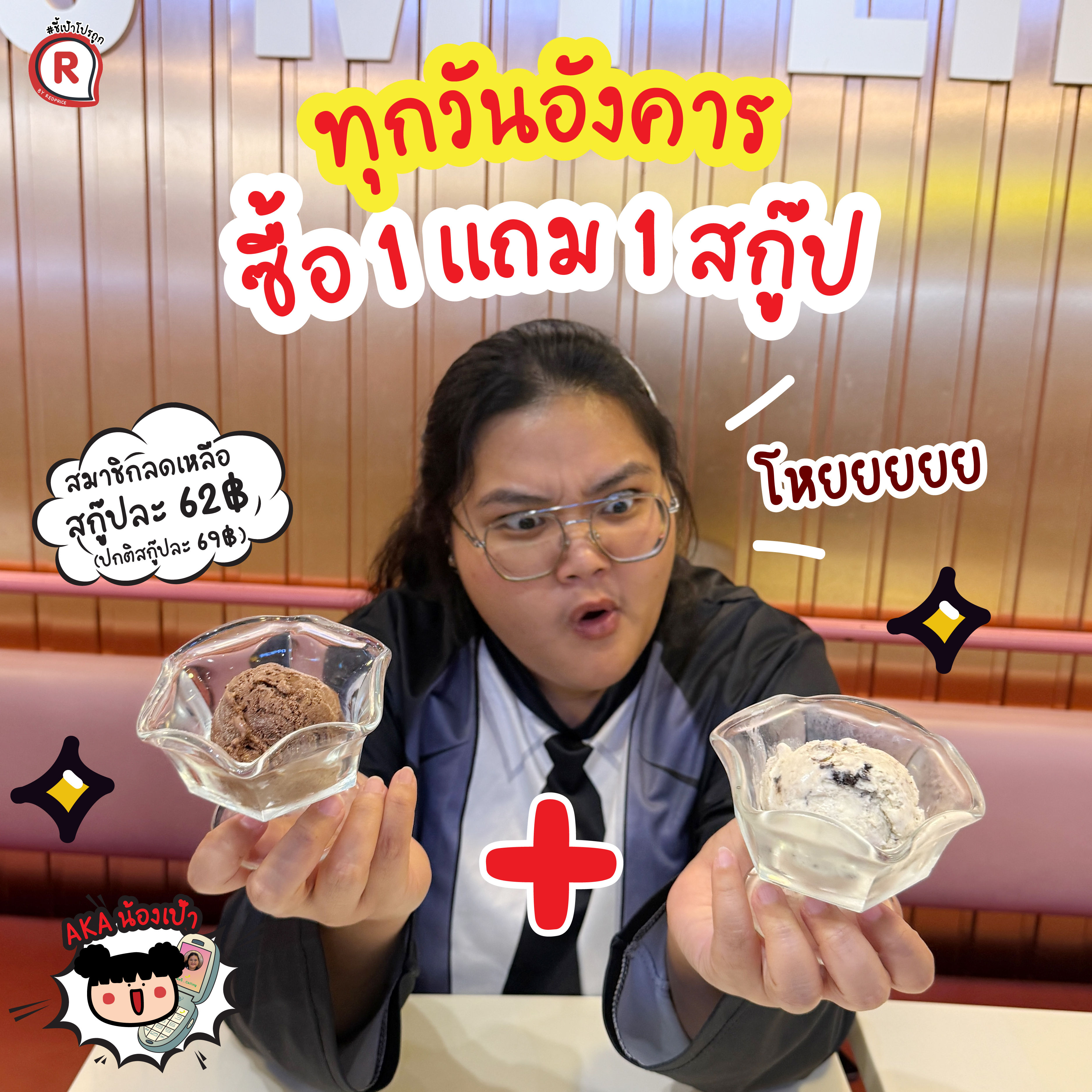 – ฟรีทันที! เมื่อซื้อไอศกรีมเมนูพิเศษทุกวันพฤหัสบดี เฉพาะทานในร้านเท่านั้น