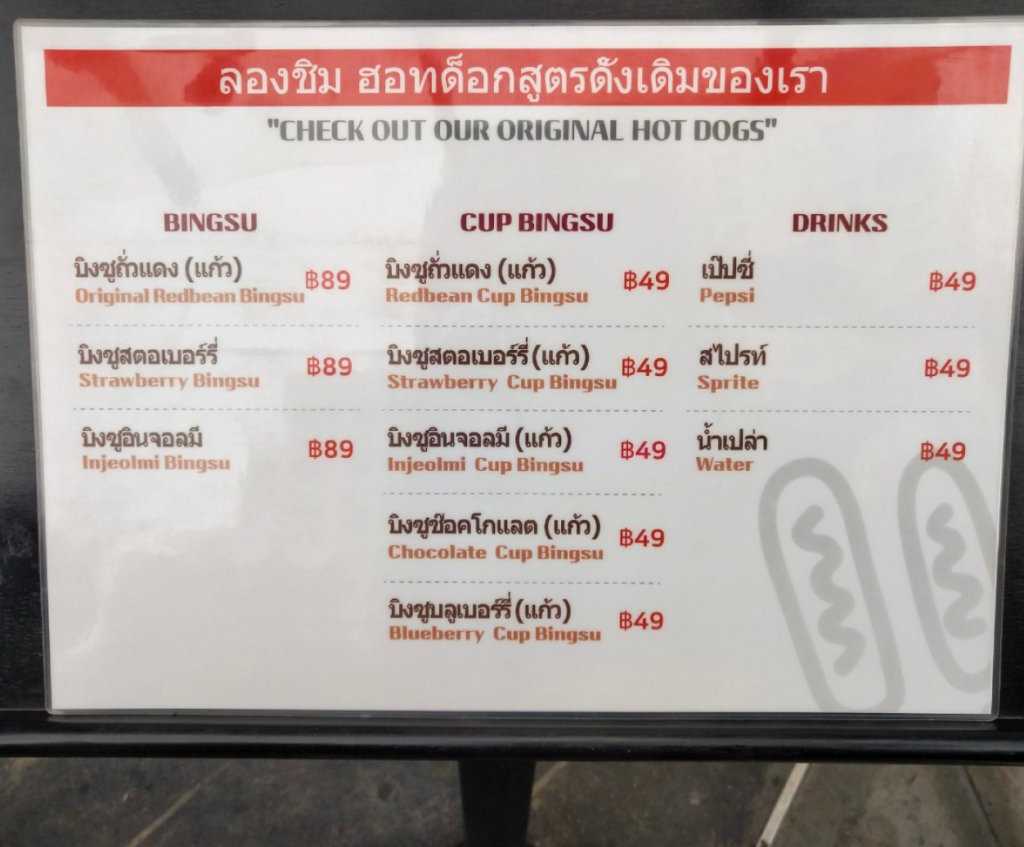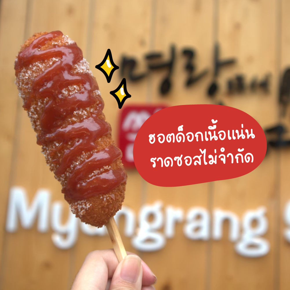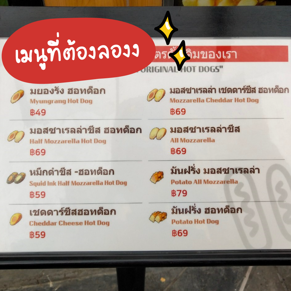 เปิดเมนูอร่อยจากร้านมยองรังจ้าาา แน่นอนว่าจะต้องเป็นเมนูฮอตด็อกสูตรดั้งเดิมที่ต้องลอง ชอบแบบไหนก็เลือกเลยย นอกจากฮอตด็อกเกาหลีแล้ว ยังมีเมนูบิงซูไซส์เล็ก ๆ ให้ทานพอชื่นใจด้วยย