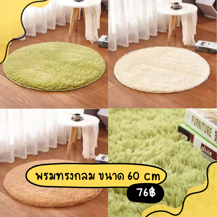 พรมสี่เหลี่ยมว่าน่ารักแล้ว พรมทรงกลมก็น่ารักไม่แพ้กัน ขนาดไม่ใหญ่มาก เหมาะจะเอาไว้รองใต้โต๊ะทำงาน หรือจะนำมารองนั่งที่มุมเล็ก ๆ สำหรับอ่านหนังสือหรือจิบชาก็ดีนะ ขนนุ่มมม และมีตัวกันลื่นใต้ผืนพรมช่วยในการยืดเกาะกับพื้นด้วย