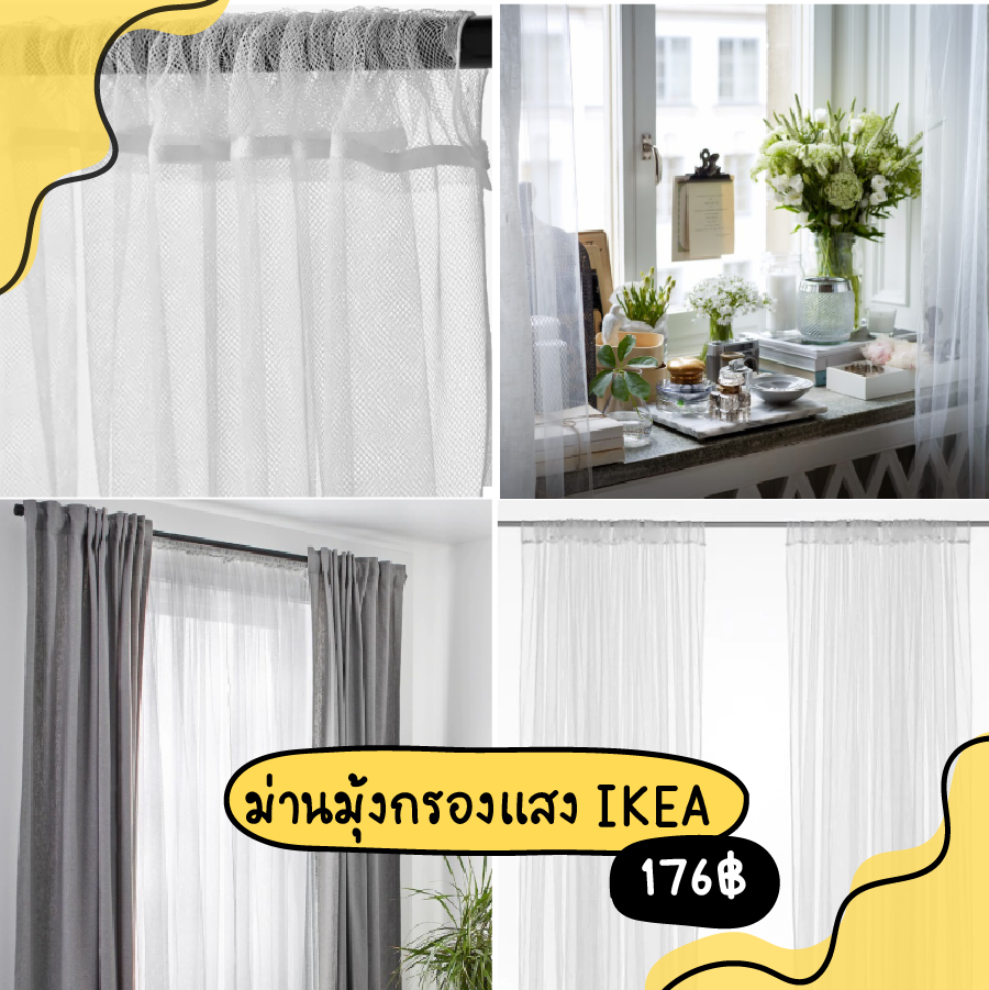 ม่านมุ้งของ IKEA จะขายเป็นคู่นะ แล้วก็ค่อนข้างยาวมาก ๆ ขนาด ผืนละ 280 x 250 ซม. เลยทีเดียว (สามารถตัดชายออกได้ถ้ายาวเกินไปจ้า)