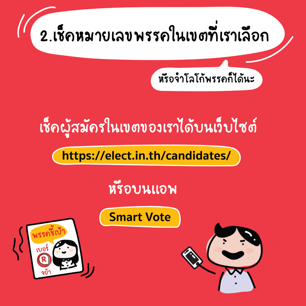 - สถานที่เลือกตั้ง คือจุดที่เราจะต้องเดินทางไปเลือกตั้ง เช็คให้แน่นอนเพื่อที่จะได้ไม่เสียเวลาเดินทาง